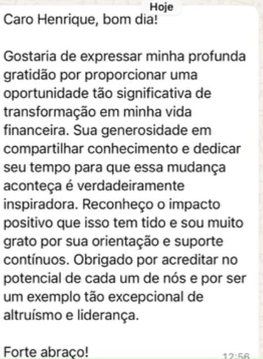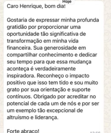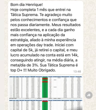 Trader e mentor no mercado financeiro, Henrique já ajudou mais de 500 pessoas a desenvolverem uma visão clara e consistente do trading. Com base em leitura de preço, probabilidade, gestão de risco e controle emocional, construiu uma metodologia própria focada em resultados no longo prazo.